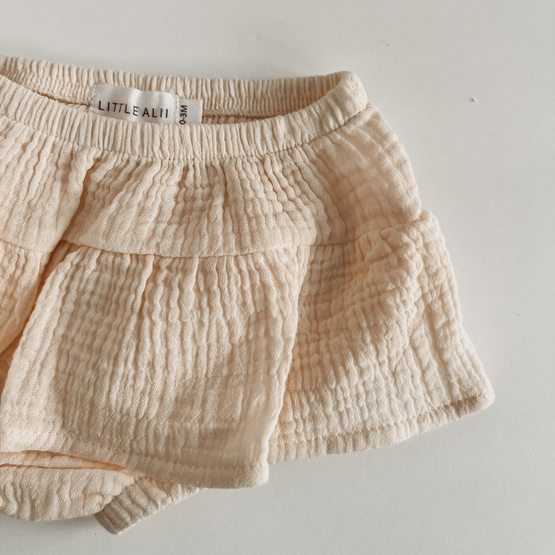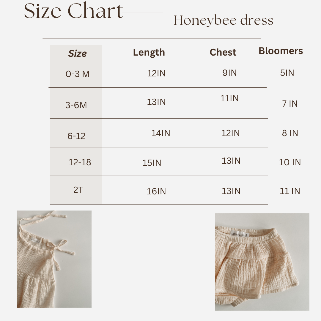 Our popular Honeybee dress and bloomer set is perfect for your little one's adventures. The complete set is crafted from active printed muslin fabric made of 100% organic cotton, offering a natural, breathable hand feel that's gentle on sensitive skin. The adjustable spaghetti straps allow the dress to grow with your child, extending the wear time and making it a versatile piece that adapts as they grow.